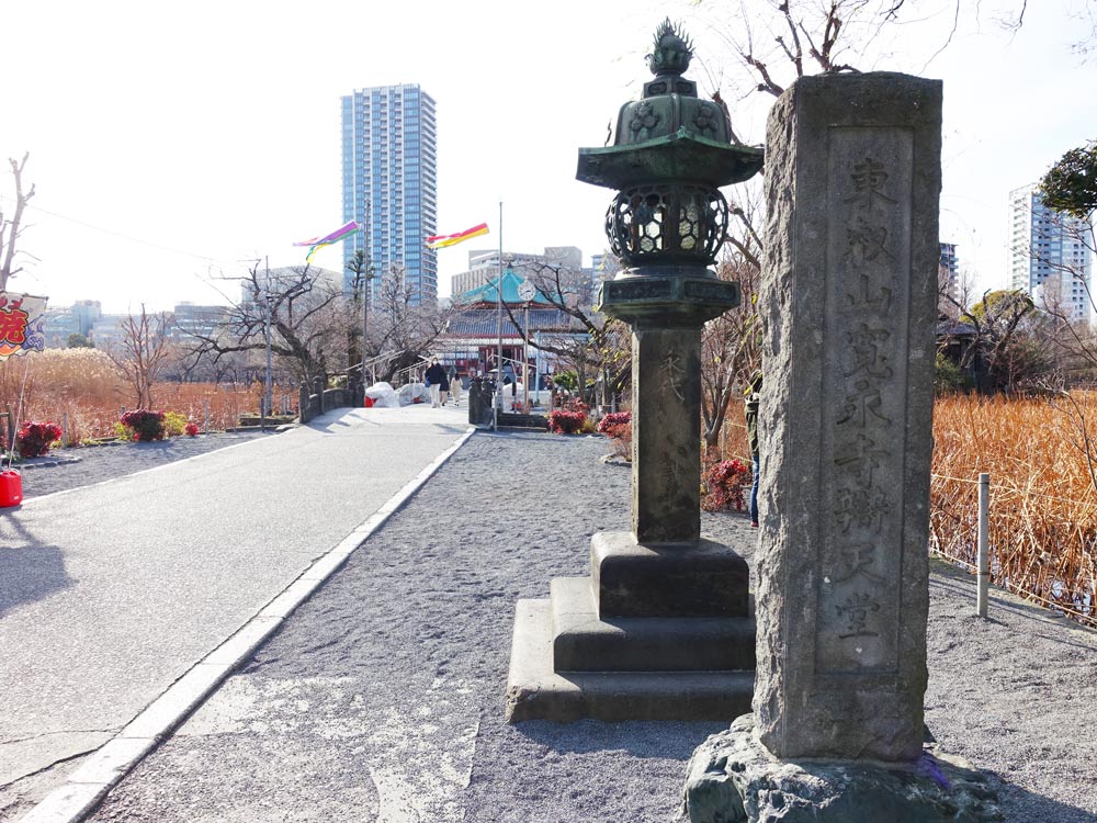 東叡山 寛永寺 不忍池辯天堂 と刻まれた石碑。