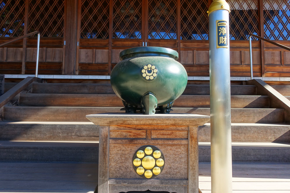 「月に星」と「九曜」の家紋。同じ千葉市内の「千葉寺」にも、同様の家紋を見ることが出来る。