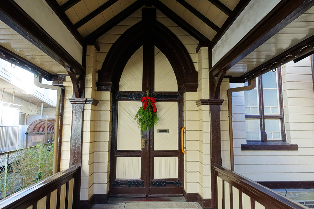 この時は12月だったので、ドアにはクリスマスの飾りがかけられている。
