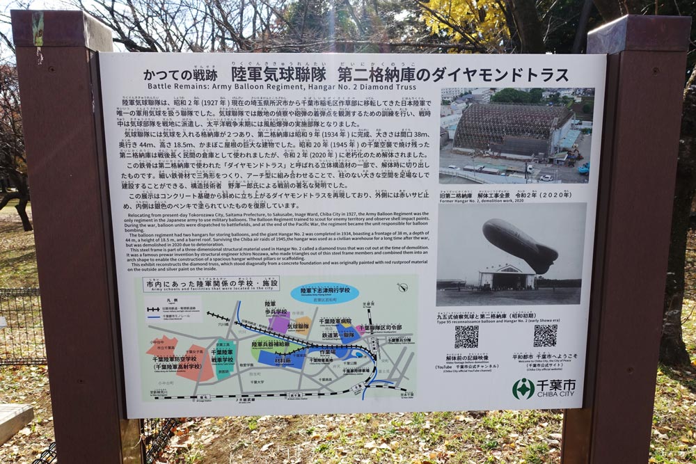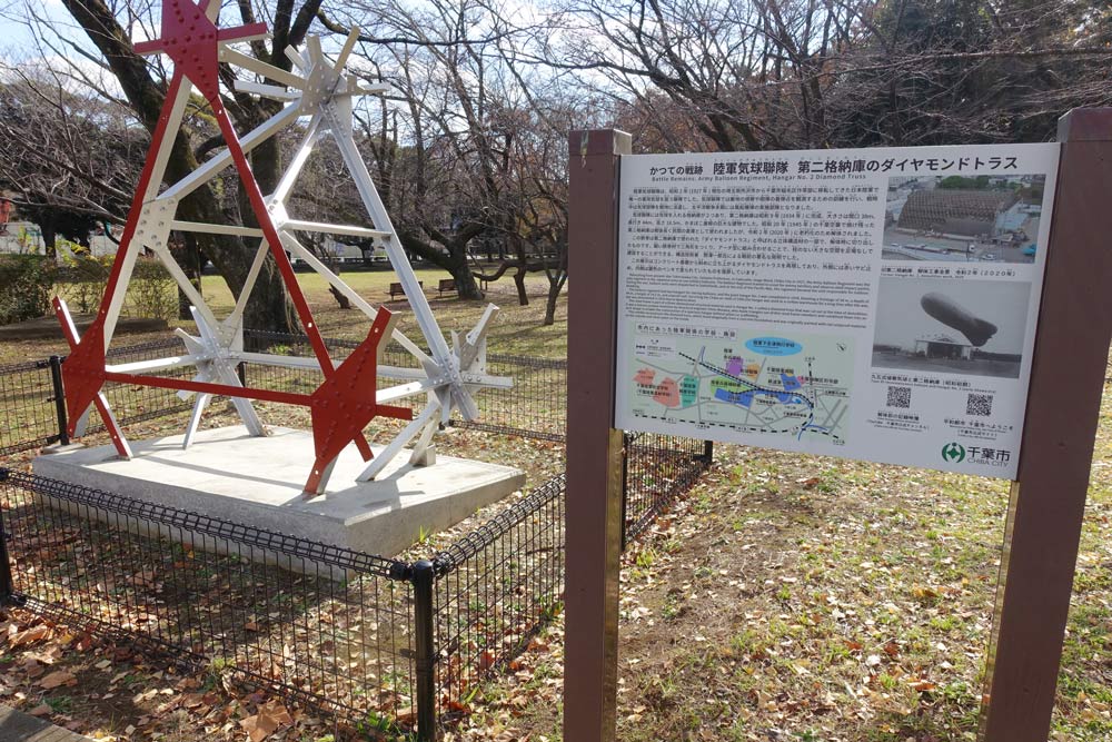 陸軍気球聯隊 第二格納庫のダイヤモンドトラス前の案内看板より