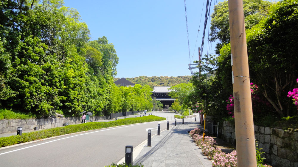 この門の奥にすでに見えている建物が、知恩院の山門。この距離でとてつもなく大きいことがわかる。