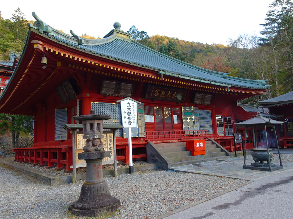 中禅寺は、栃木県日光市の中禅寺湖畔・歌ヶ浜にある天台宗の寺院である。世界遺産に登録された輪王寺の別院であり、坂東三十三観音霊場の第18番に位置付けられている。 参拝日:2019年10月21日
