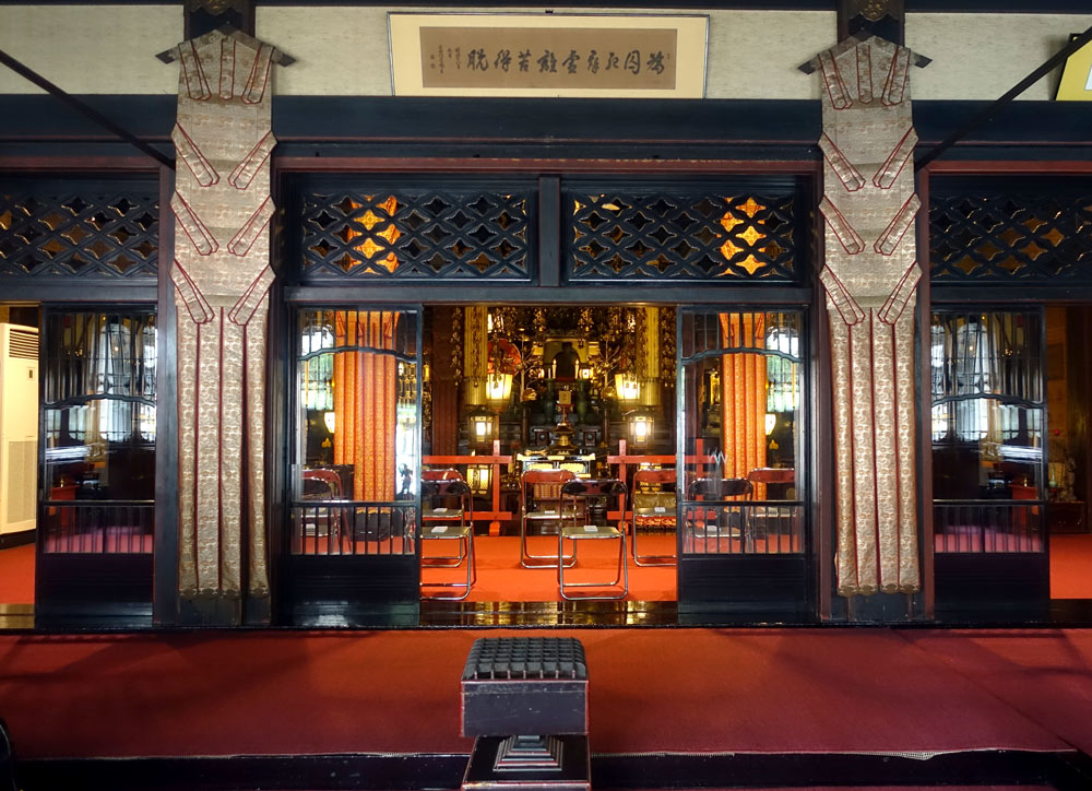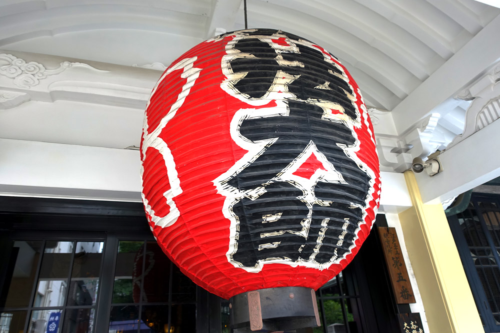 本堂は鉄筋コンクリート製で、美しい屋根と大きな提灯が印象的だった。