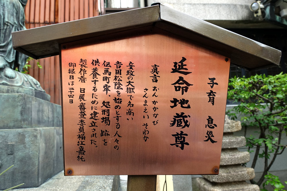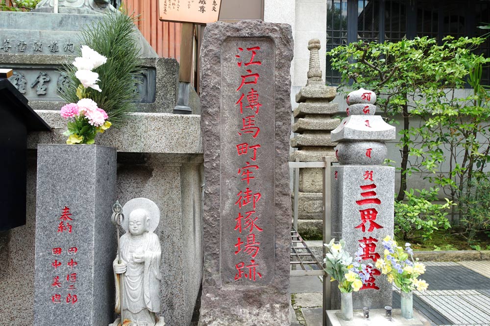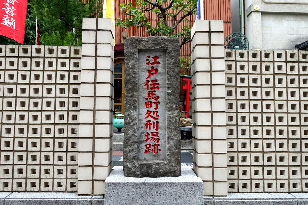 延命地蔵の前には「江戸傳馬町牢御椓場跡」と書かれた石碑がある。