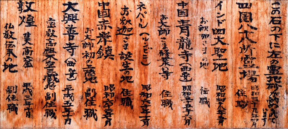 この石の下には、ご住職や副住職が訪れたインド、ネパール、中国、敦煌などの仏教の霊場から集めた砂が埋められているのだそう。まさにパワースポットと言える場所だ。