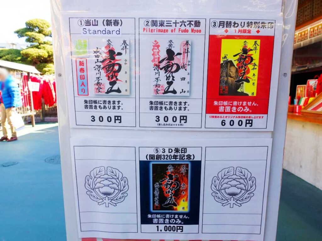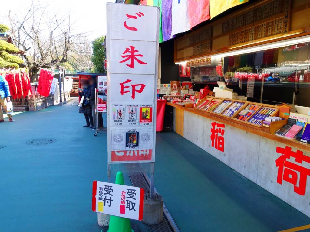 門を入り常香炉の右側、「御朱印受付所」にて御朱印を頂く。大きい看板が立っているのでわかりやすい。御朱印は複数から選べる。