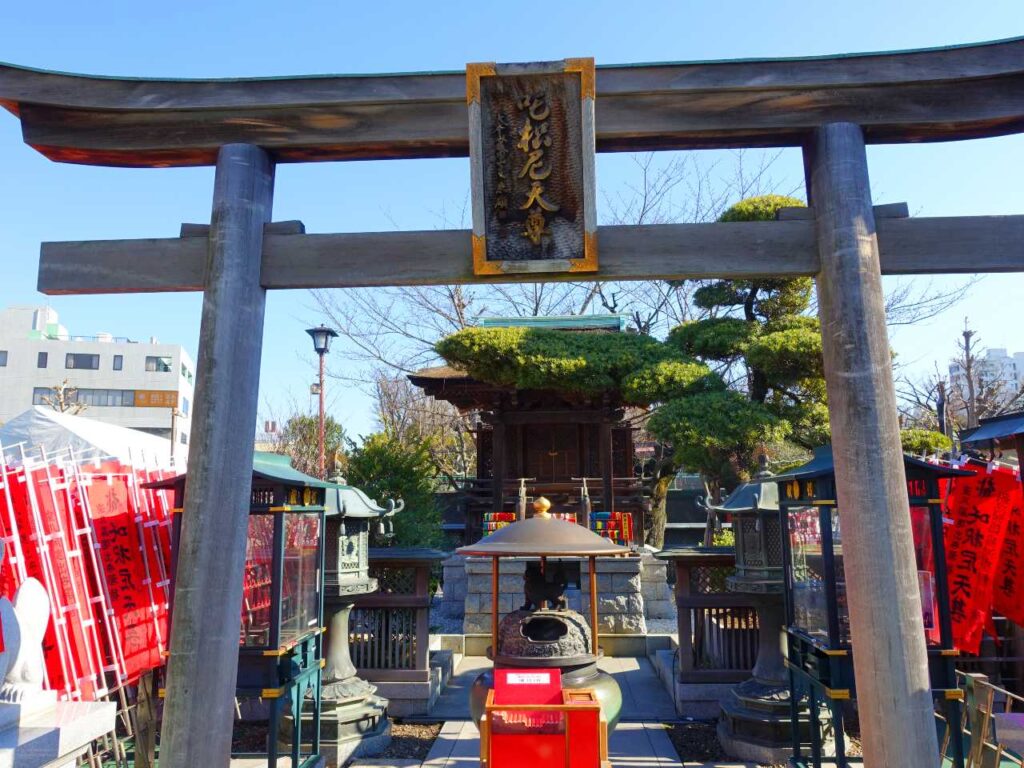 境内入ってすぐ右手に、鳥居とお社がある。これは、成田山新勝寺の「成田山開運出世稲荷」から分霊されたものだそう。ご利益は開運・出世とある。ぜひお参りしておきたい。