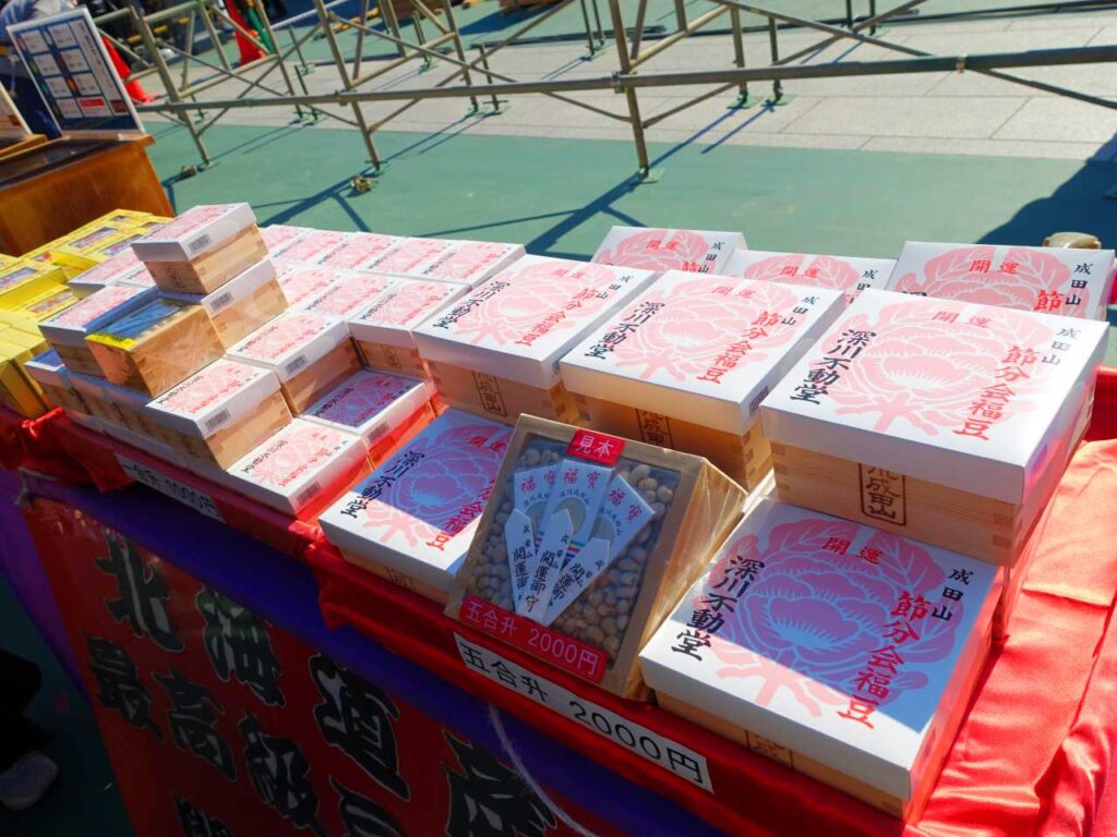 訪問日が1月下旬であり、2月の節分の準備が進んでいた。本堂で祈祷され、お守りとともに販売されているありがたい豆も販売中だった。毎年、節分を前に売り切れてしまうほど人気なのだとか。