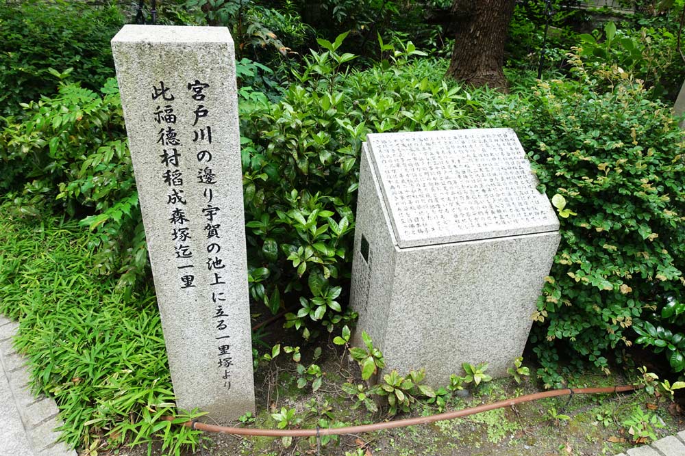 その昔、福徳神社一帯にある鎮守の森を「稲荷の森」と呼び、敷地内に建つ一里塚を「稲荷の森塚」と呼んでいたそう。神社に伝わる碑文を基に、この一里塚を再現したとのこと。