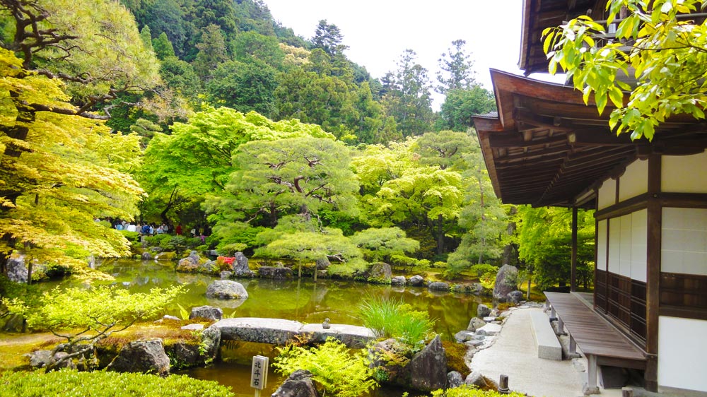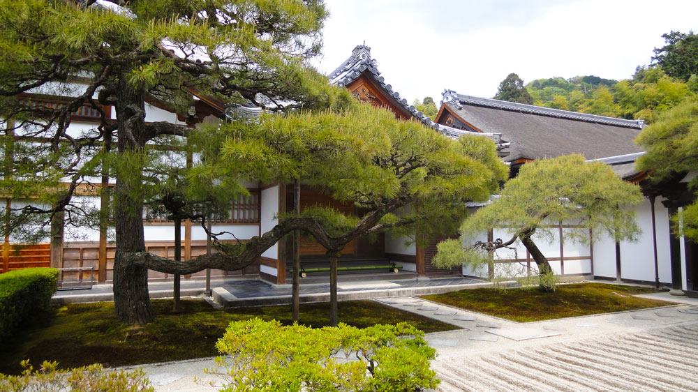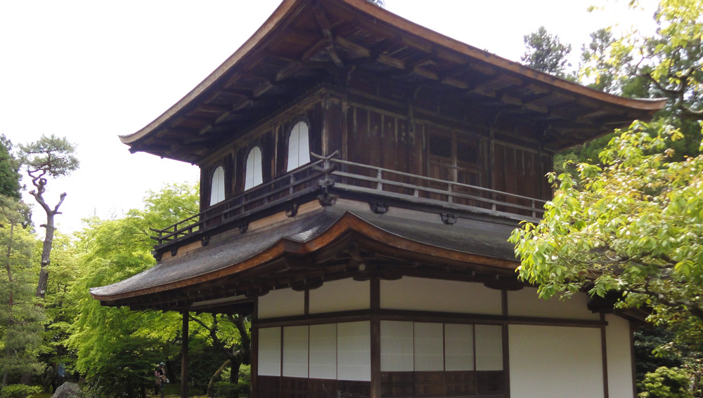 よく比較される金閣寺とは対照的に、決して煌びやかではないが、素朴な美しさと詫び寂びの趣を感じることができる。この色褪せた風合いと、白く輝く白川砂の庭との対比が印象に残る。