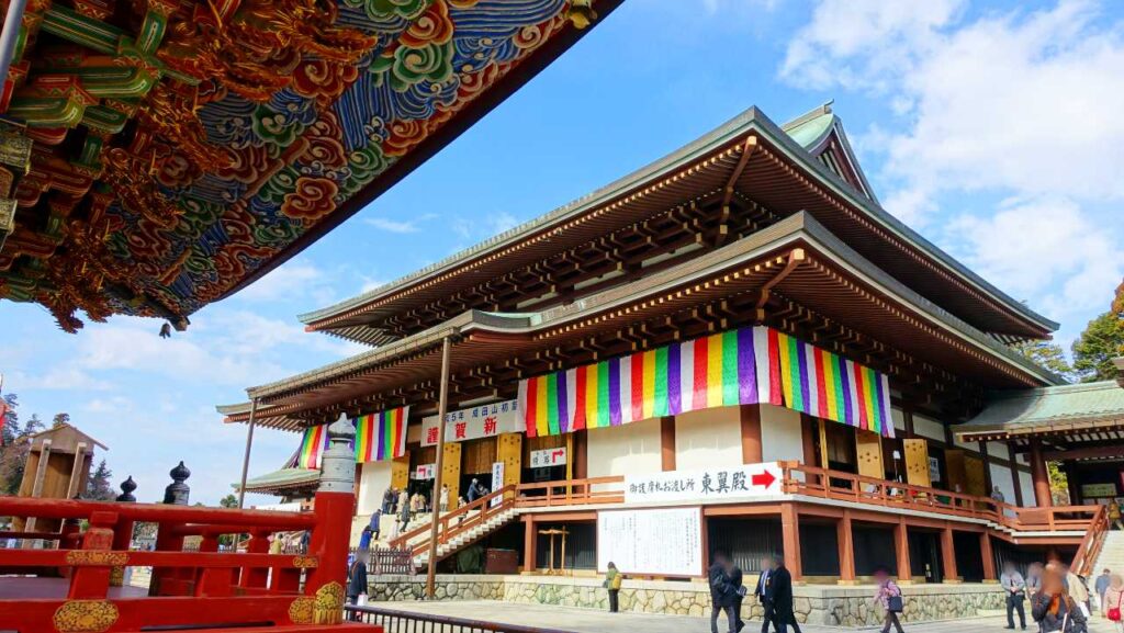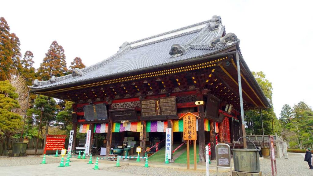 新勝寺に参拝した際は、本堂の護摩行(1時間に1回/無料)をぜひ体験頂きたい。
