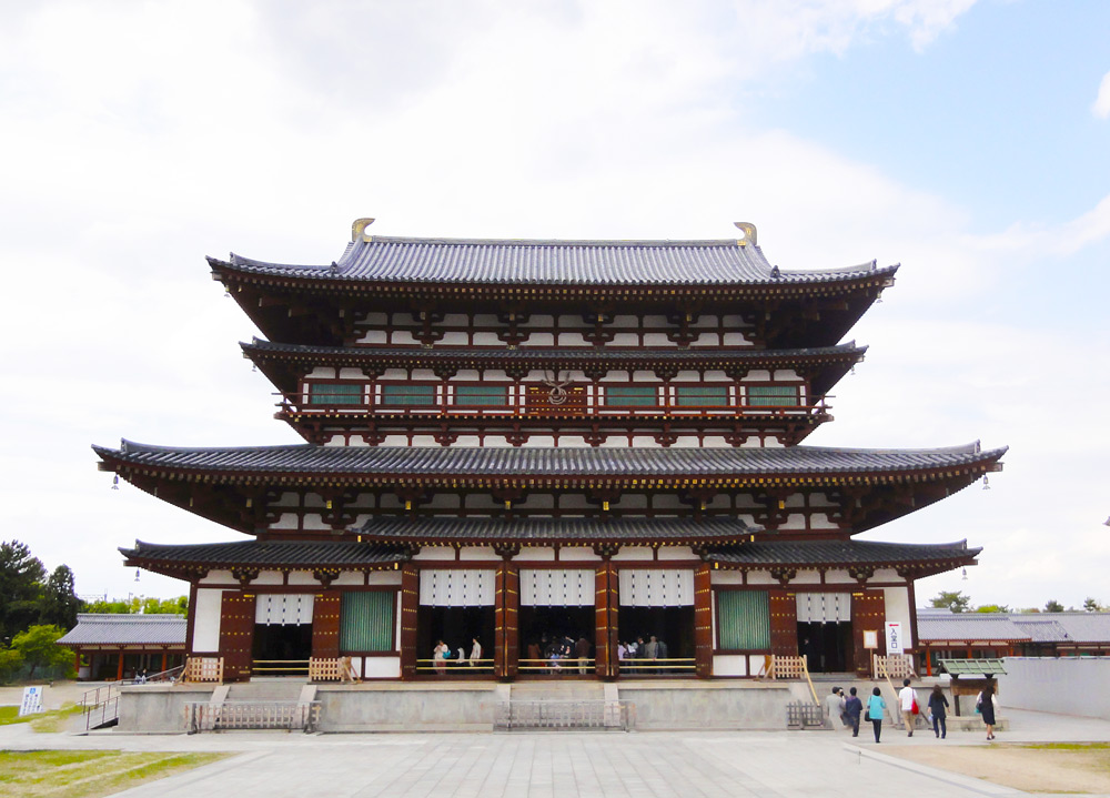 ドドンと大きな建物が薬師寺の本堂。スケールが違う。