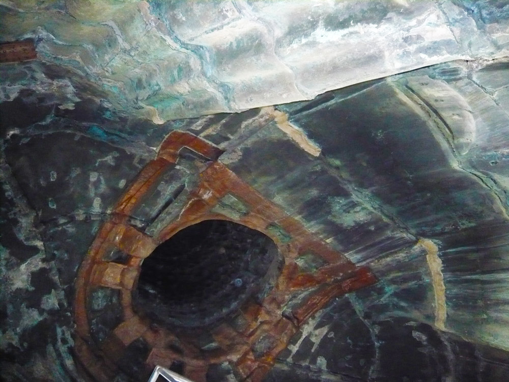 壁面一面に書かれた梵字は「不動明王の真言」が書かれている。