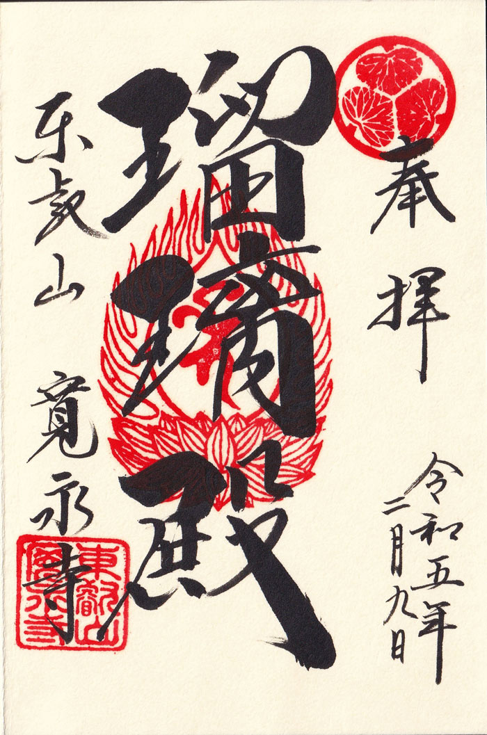 本尊「不動明王」の文字と、梵字「カン」の印が押されたこの御朱印のバランスがとてもカッコいい。不動明王の姿が文字に乗り移っているような印象さえ受けるのだ。