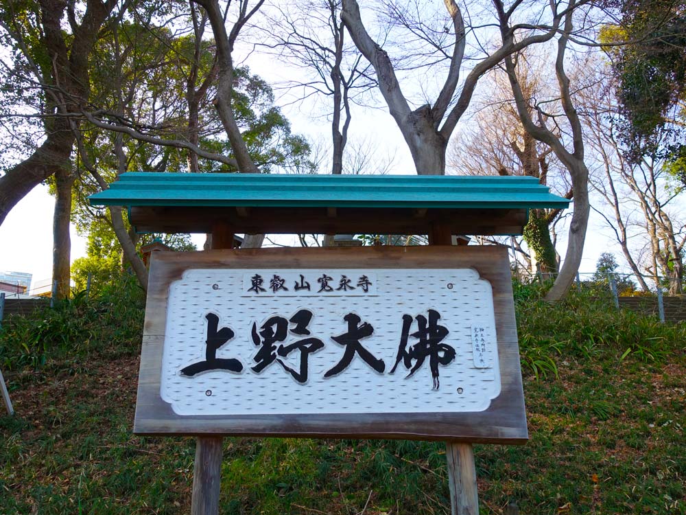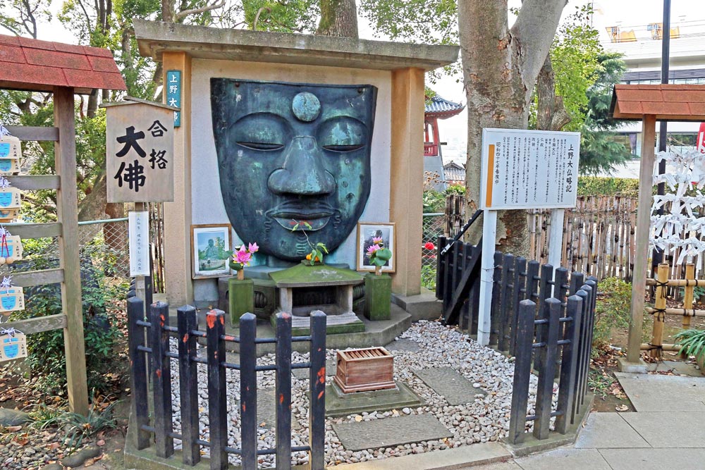 上野寛永寺を主に散策している際に、上野大仏の看板を見かけて何となく足を運んだところ、このような大仏様に出会い、とても驚いた。また合格大仏としても有名であることも知った。