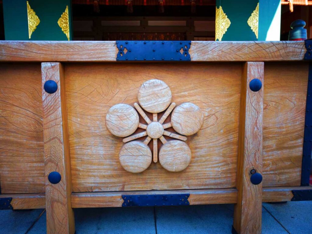 お賽銭箱には、太宰府天満宮の象徴である梅があしらわれている。