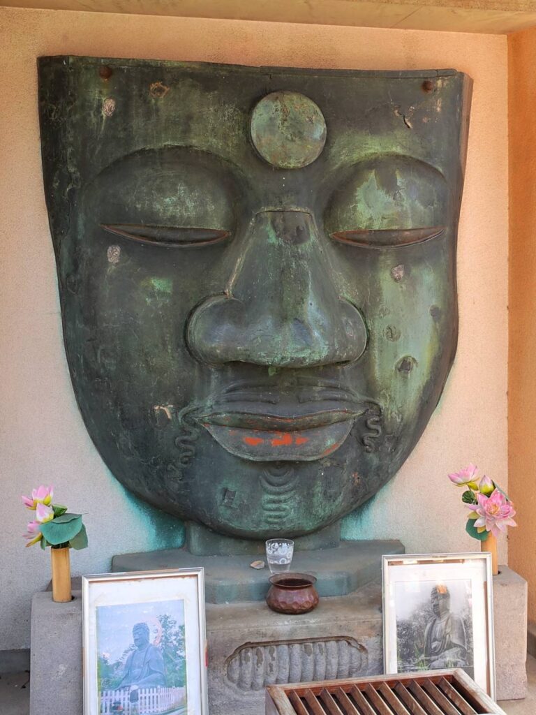 実はこの大仏様、関東大震災で頭部を、第二次世界大戦では胴体を失ってしまい、現在はなんとお顔だけの姿で祀られている。