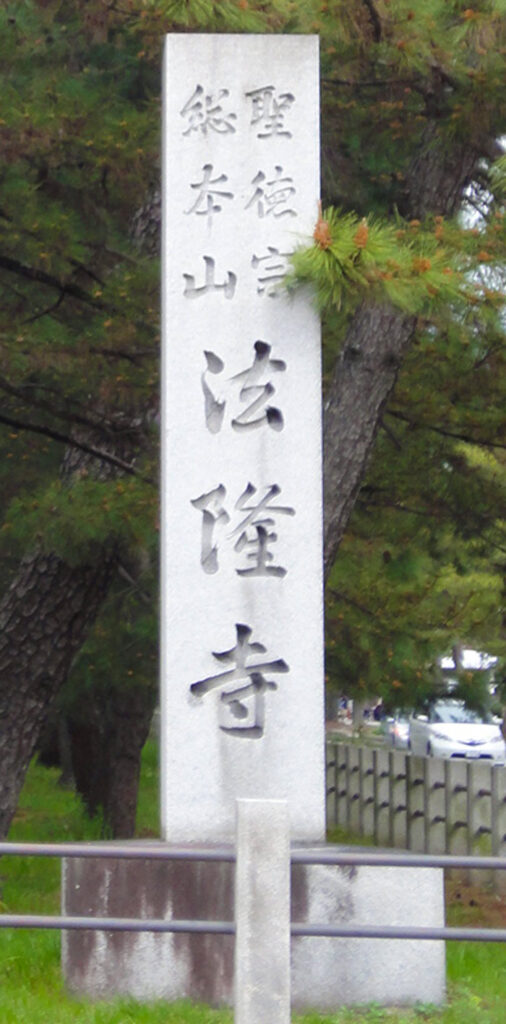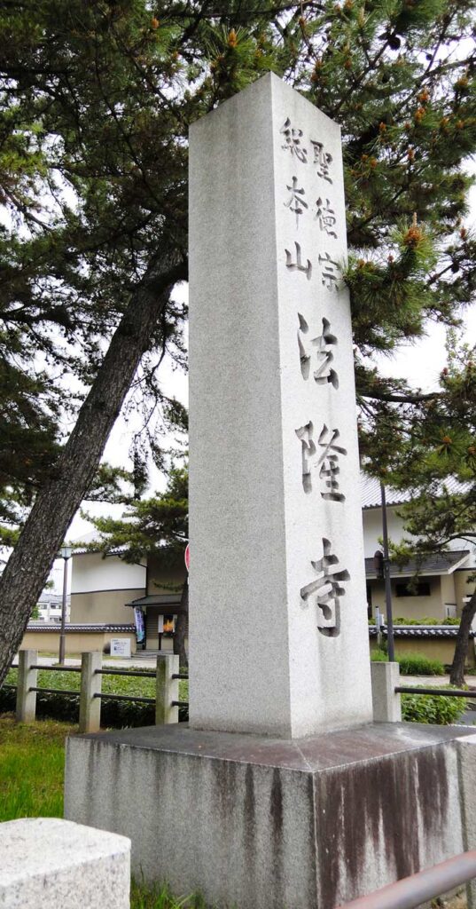 「聖徳院 総本山 法隆寺」と刻まれた標柱