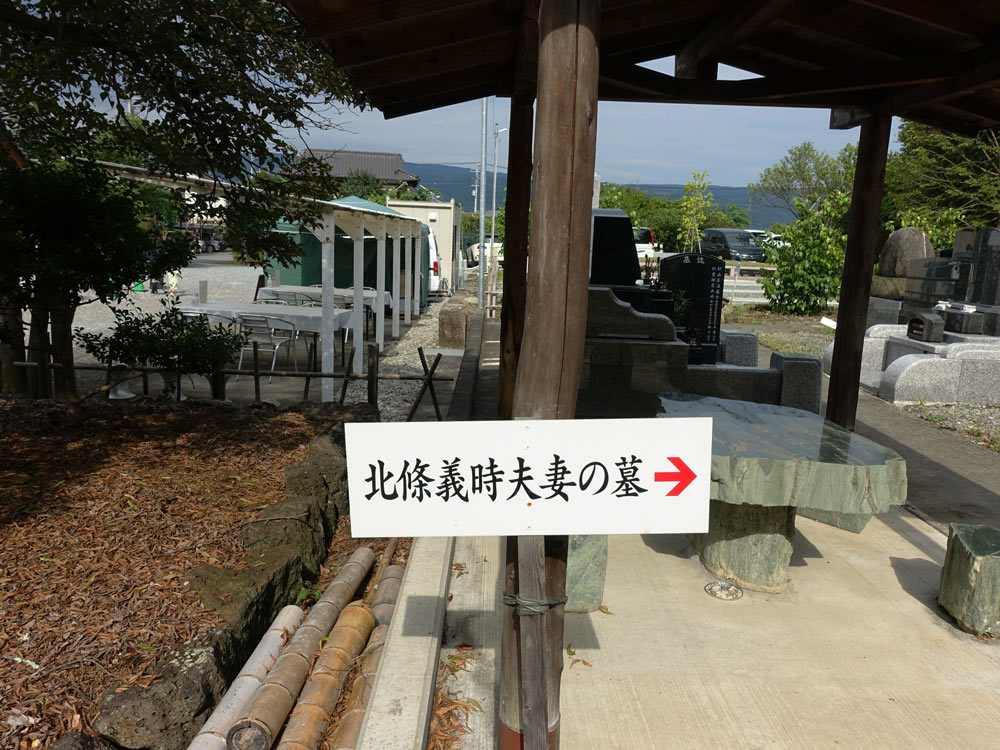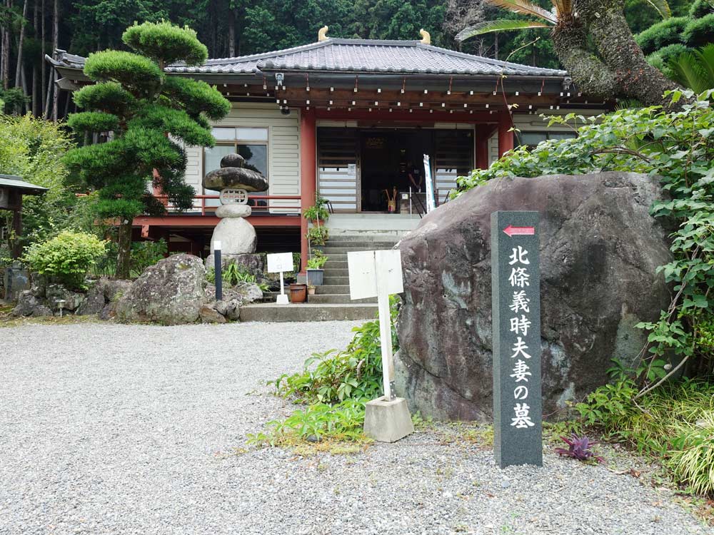 境内にある「小四郎山」と呼ばれる丘の上には、北條義時夫妻の墓がある。
