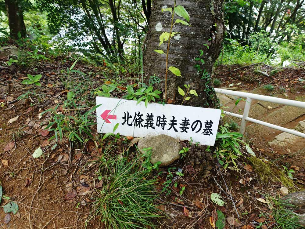 本堂で手を合わせた後は、看板に従って義時の墓を訪ねることに。随所に看板が設置されていて、迷うことなくたどり着くことが出来る。墓所は少し小高い丘の上に建てられており、江間を見渡せるようにと配慮したかもしれない泰時の思いを感じた。