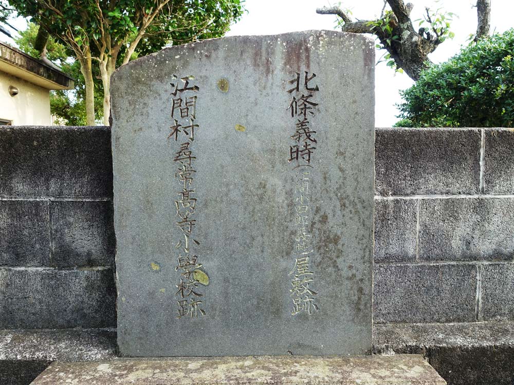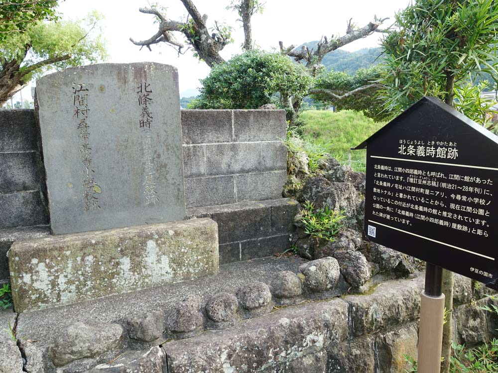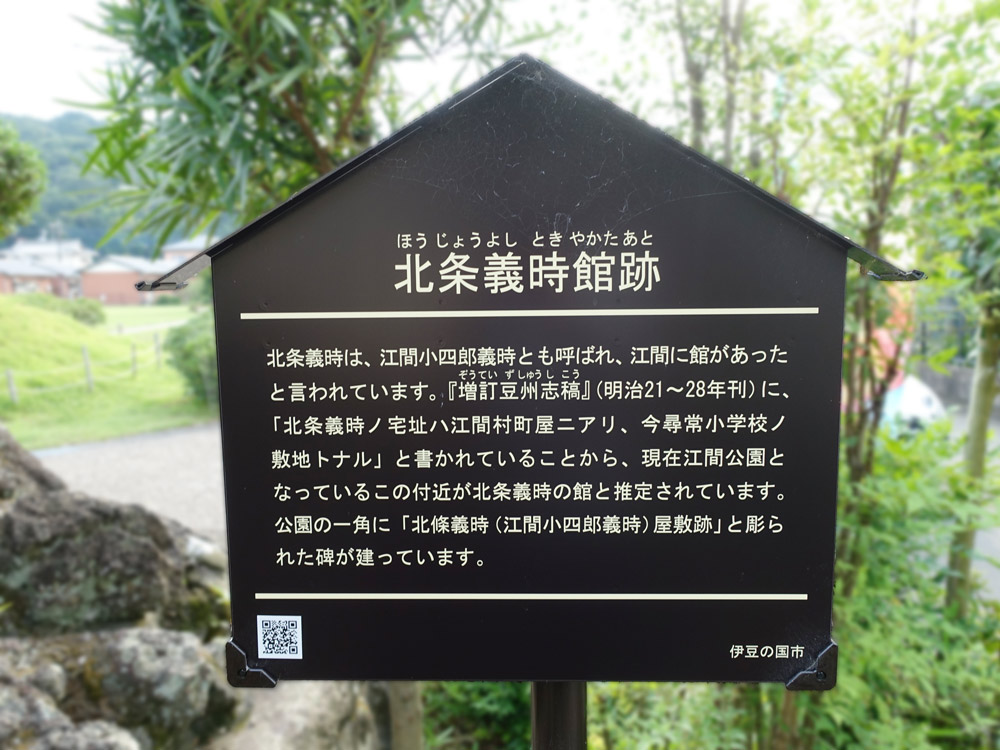 北条義時は、江間小四郎義時とも呼ばれ、 江間に館があったと言われています。『増訂豆州志稿』 (明治21~28年刊)に、「北条義時ノ宅址ハ江間村町屋ニアリ、今尋常小学校ノ