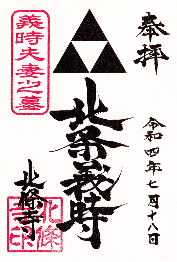 大河ドラマ放映期間の限定御朱印。 北条家の家紋である「三つ鱗」が良い。