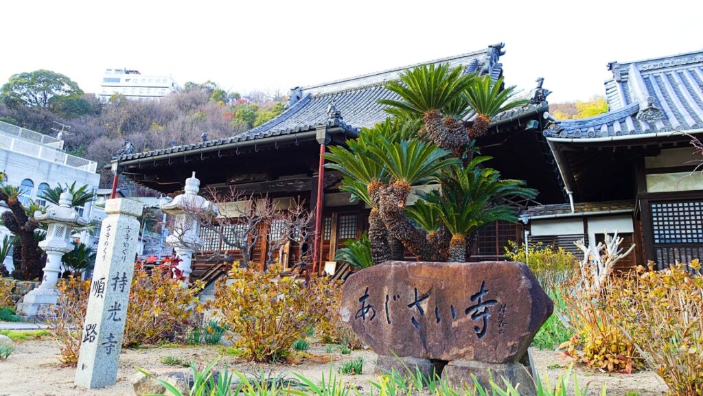 尾道特有の坂道と細い路地を歩き、持光寺に到着。「尾道七佛めぐり」で一番最初に巡るお寺。