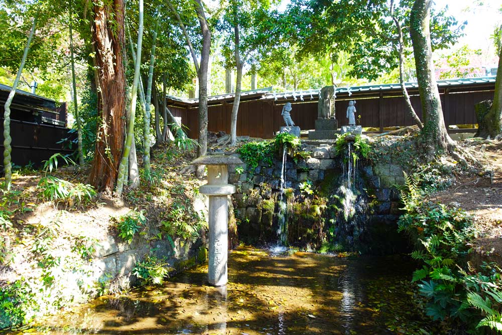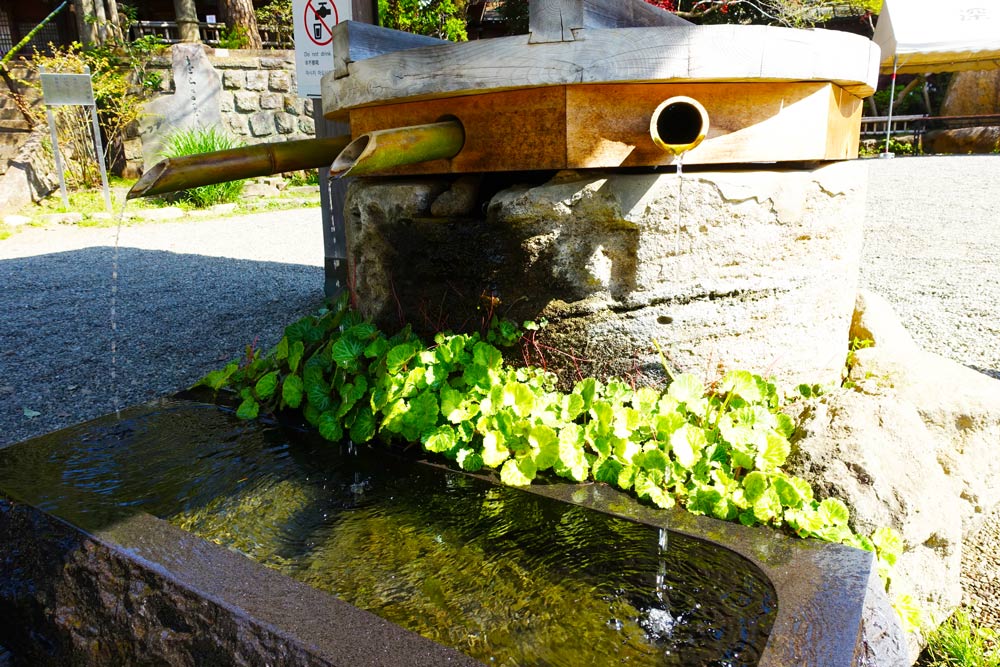 井戸から流れ出た水が竹筒を通って手水舎へと流れている様子は、風情があって素敵。
