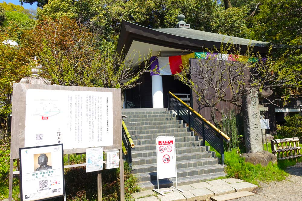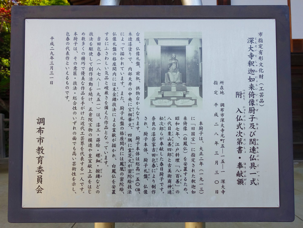 写真撮影禁止のため写せないが、このガラスの向こう側に釈迦如来像があった。