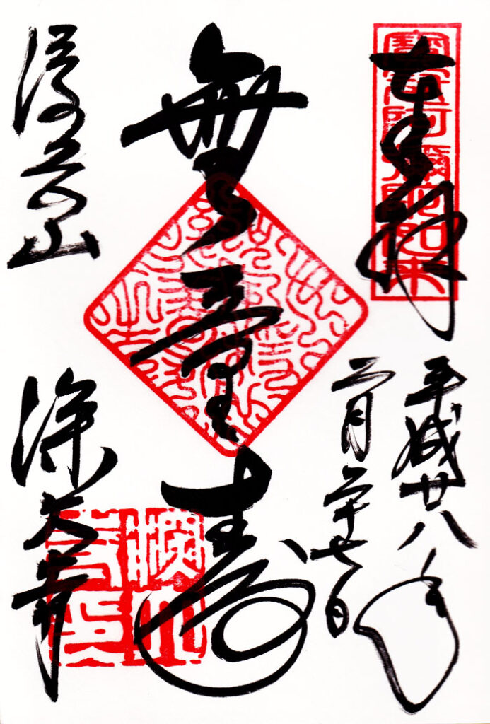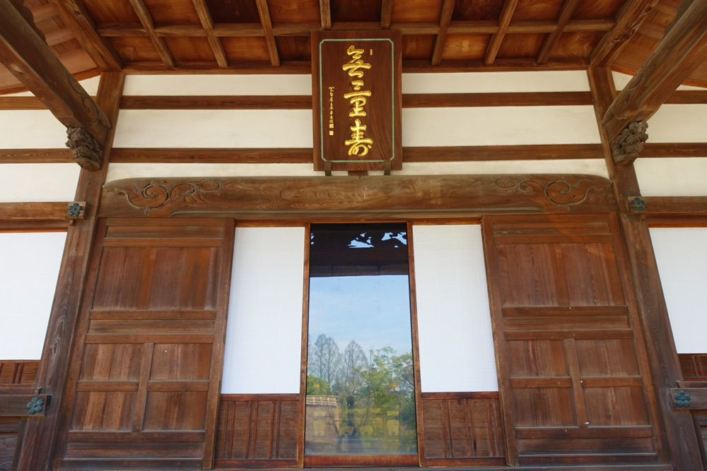 扁額には、御朱印の文字と同じ「無量壽」の文字が書かれている。