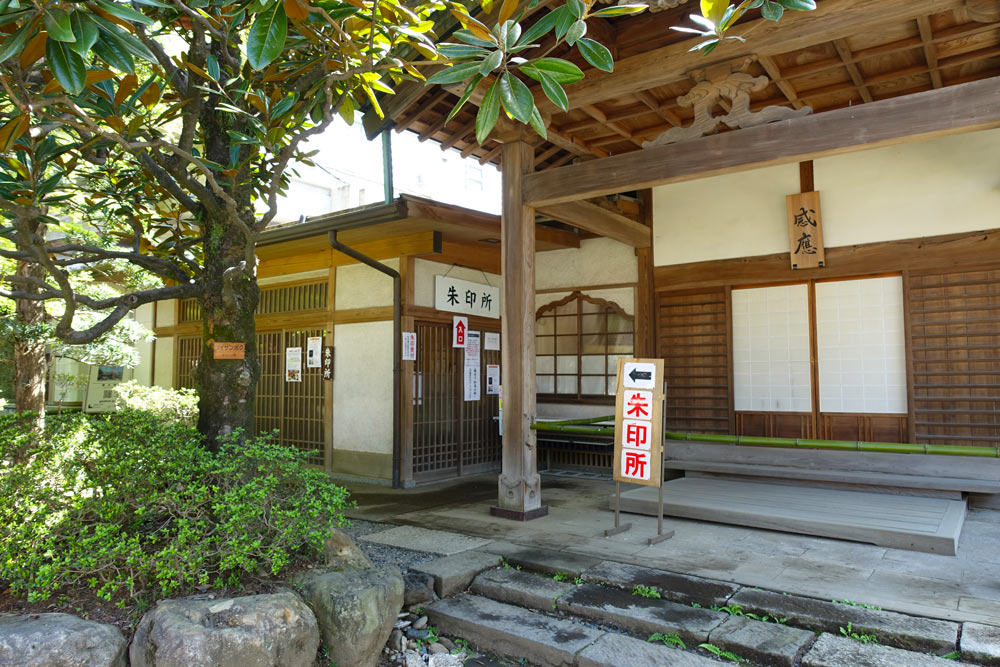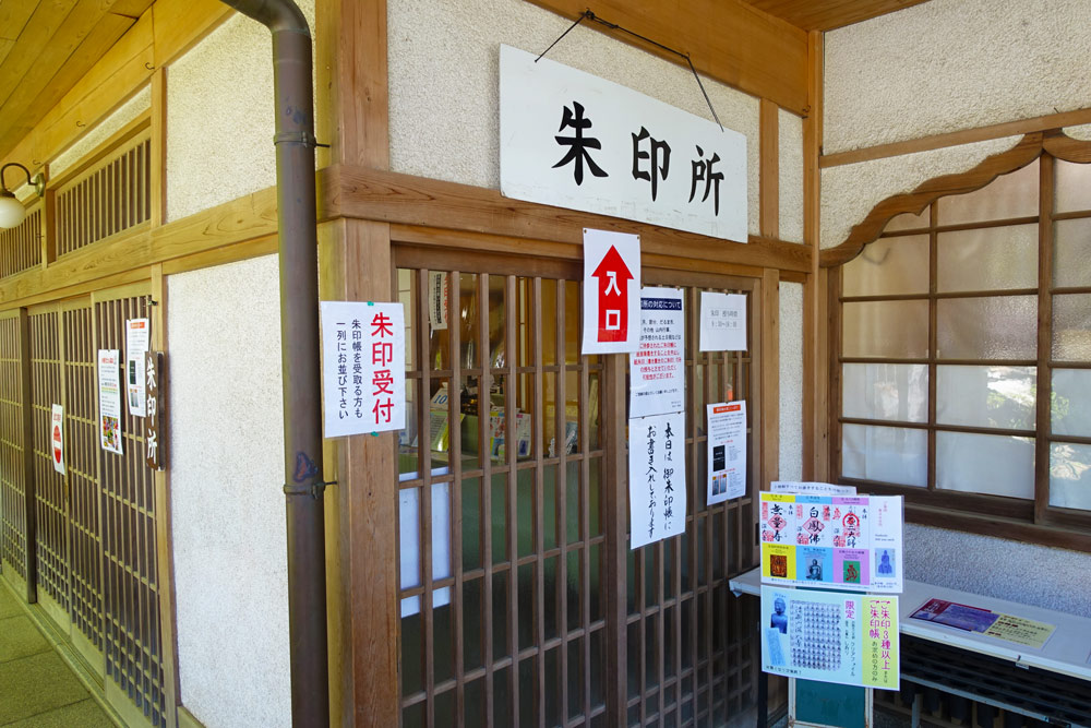 御朱印所は、本堂向かって右側にある。※写真のように、目立つ看板が出ているのでわかりやすい。