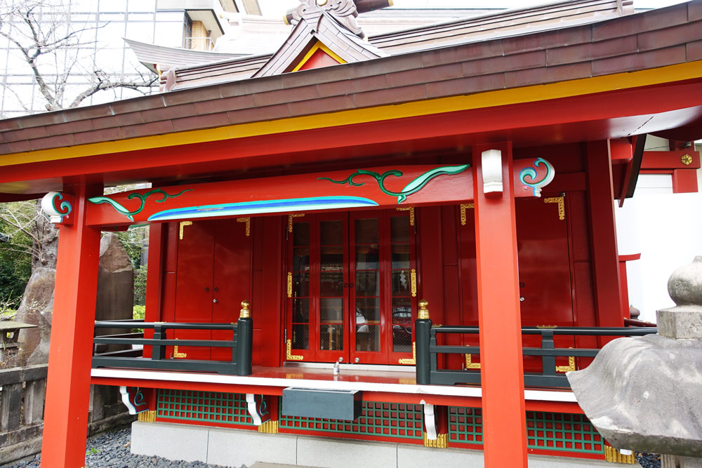 現社殿は、昭和四十一年二月二十八日に東京鰹節類卸商組合の有志により再建された。