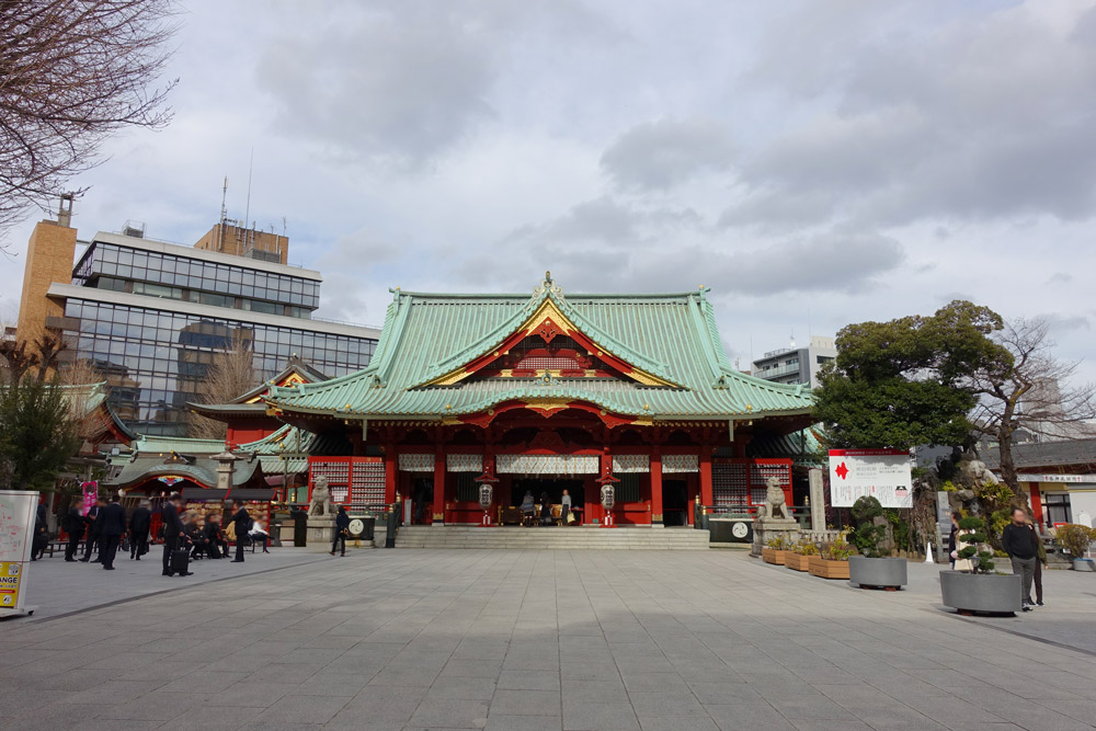 慶長八年(一六〇三) 徳川家康公が江戸に幕府を開き江戸城を拡張する際、江戸城から表鬼門の位置にあたる現在の地へ遷座し、幕府より御社殿が造営されました。以降、江戸時代を通じて「江戸総鎮守」として幕府はもちろんのこと江戸庶民にいたるまで多くの崇敬を受けました。