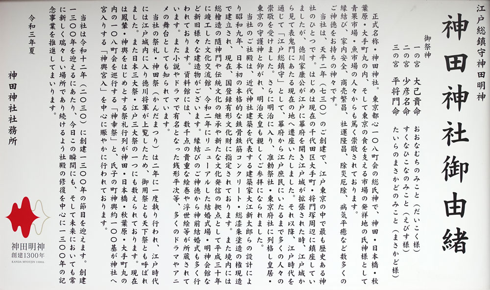 - 神田、日本橋、秋葉原、大手町、丸の内などの総氏神