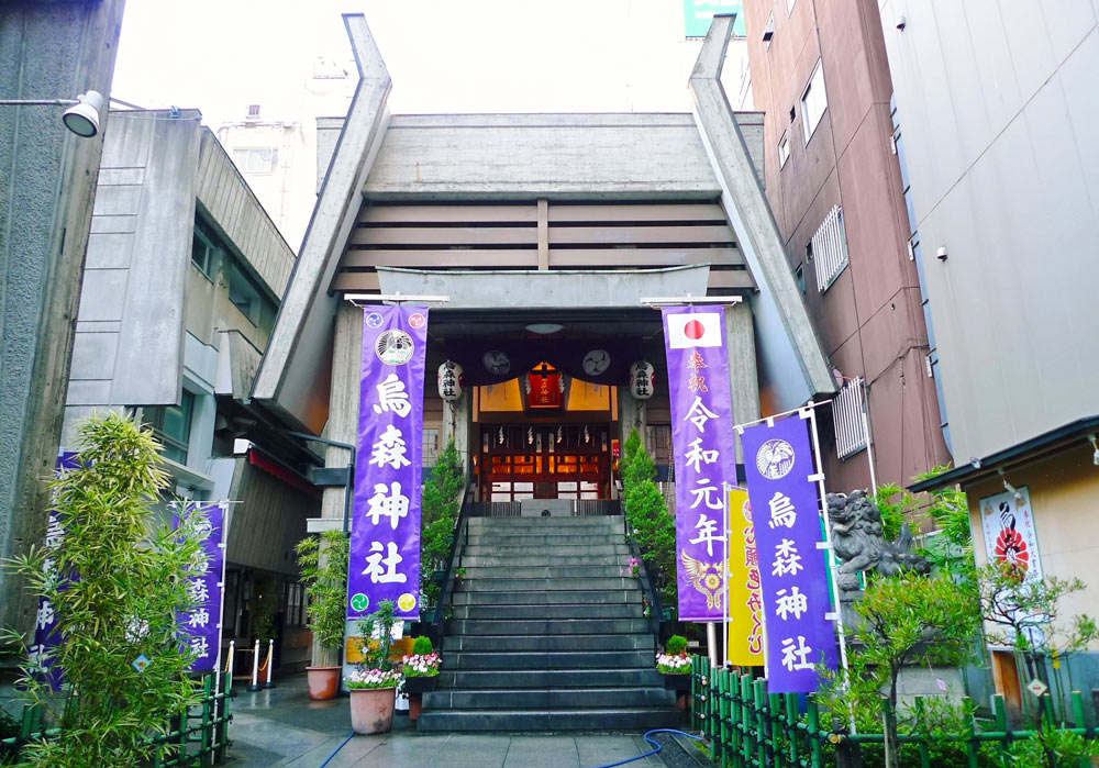 都会の真ん中に、ひっそりと佇む烏森神社。その歴史は深く、平安時代中期に平将門の乱を平定した「藤原秀郷」が創建したとされている。都会の景色に馴染むようにモダンな造りとなっている鳥居や本殿も見どころの一つだ。