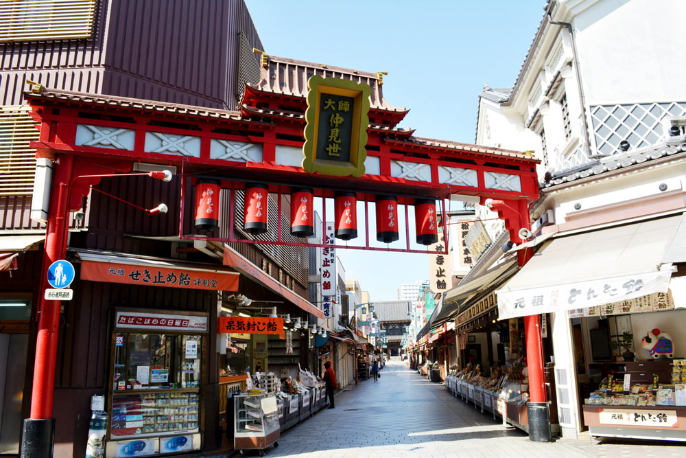 川崎大師へ向かう山門へ続く道は、仲見世通りと呼ばれ、多くのお店が軒を連ねている。この通りで有名なのが「せき止め飴」だ。仲見世通りを歩くと、トントコトントコというリズミカルな音が聞こえてくる。それは、職人が包丁で飴を切っている音なのだ。この響きに惹かれ、その妙技につい見入ってしまう。好みには個人差があるかもしれないが、素朴な甘さが広がるシンプルな味わいは、試さずにはいられない。お土産にも最適なので、ぜひ一袋購入して帰りたい。