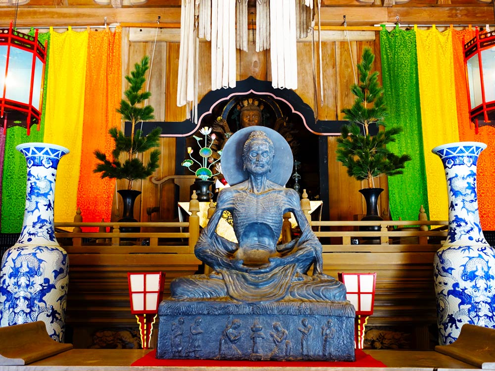 一見異様なお姿だが、これはお釈迦様が極限の苦行(断食)を行っている様子を表したものとされている。顔に生える髭や断食によってやせ細った体は、まさに人間らしい部分の象徴だ。とすると、とても貴重な瞬間を表現した像だ。