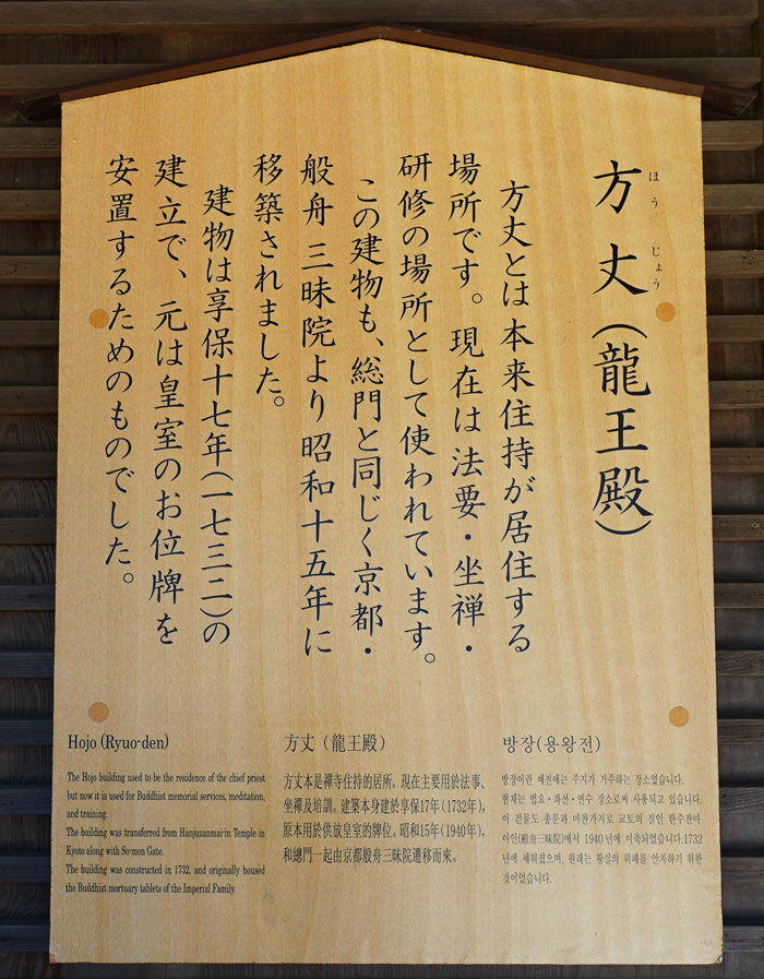 方丈前の案内看板より