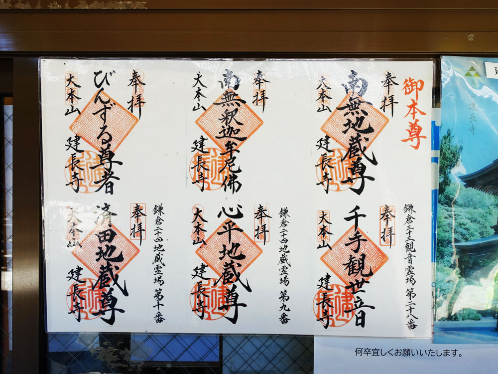 この建長寺が建つ場所は、かつて罪人の処刑場として使われており、そのお寺の本尊が地蔵菩薩であった。当時のものと伝えられている地蔵菩薩像は、この仏殿の千体地蔵にかこまれて建長寺仏殿内に安置されているとのこと。