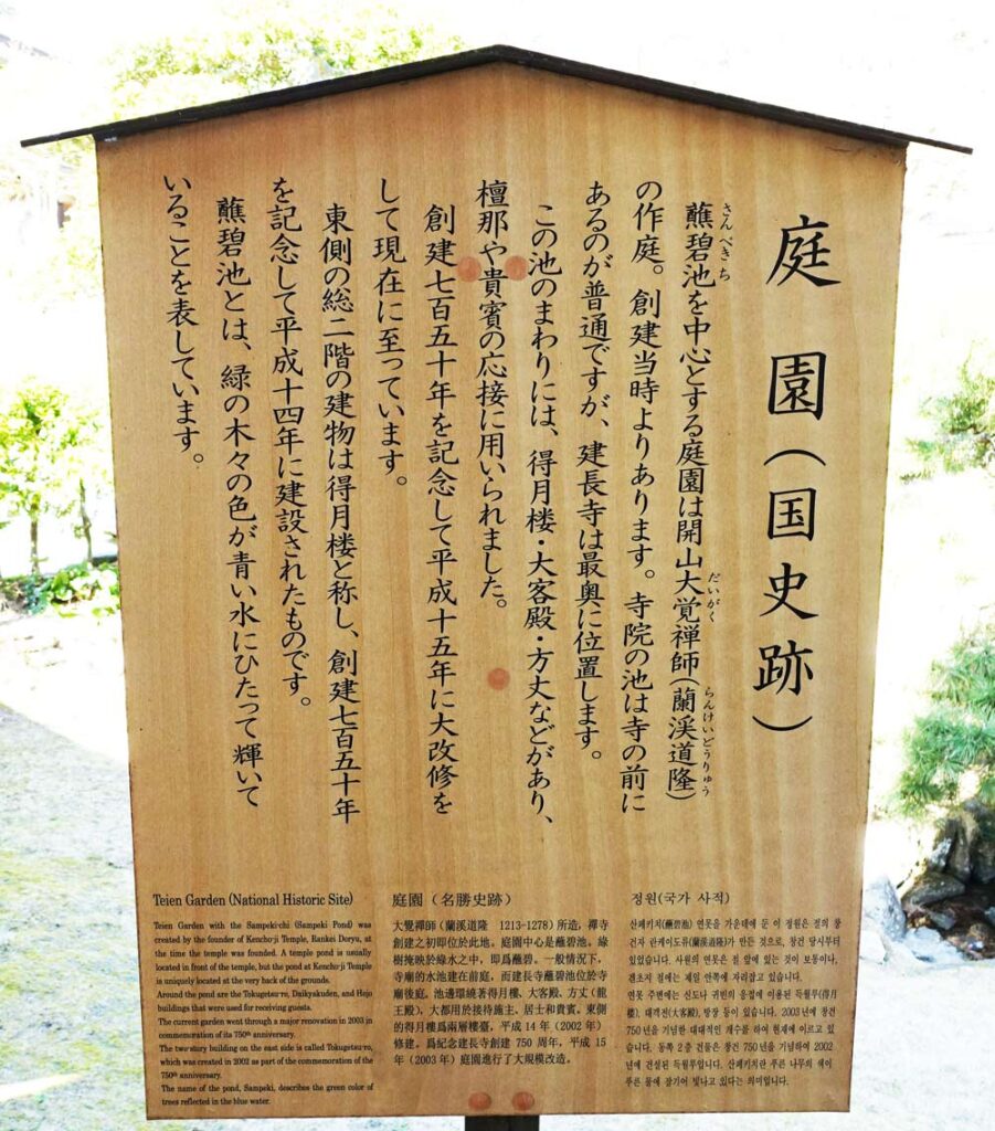 この庭も蘭渓道隆が作ったとされ、創建当時からのものである。