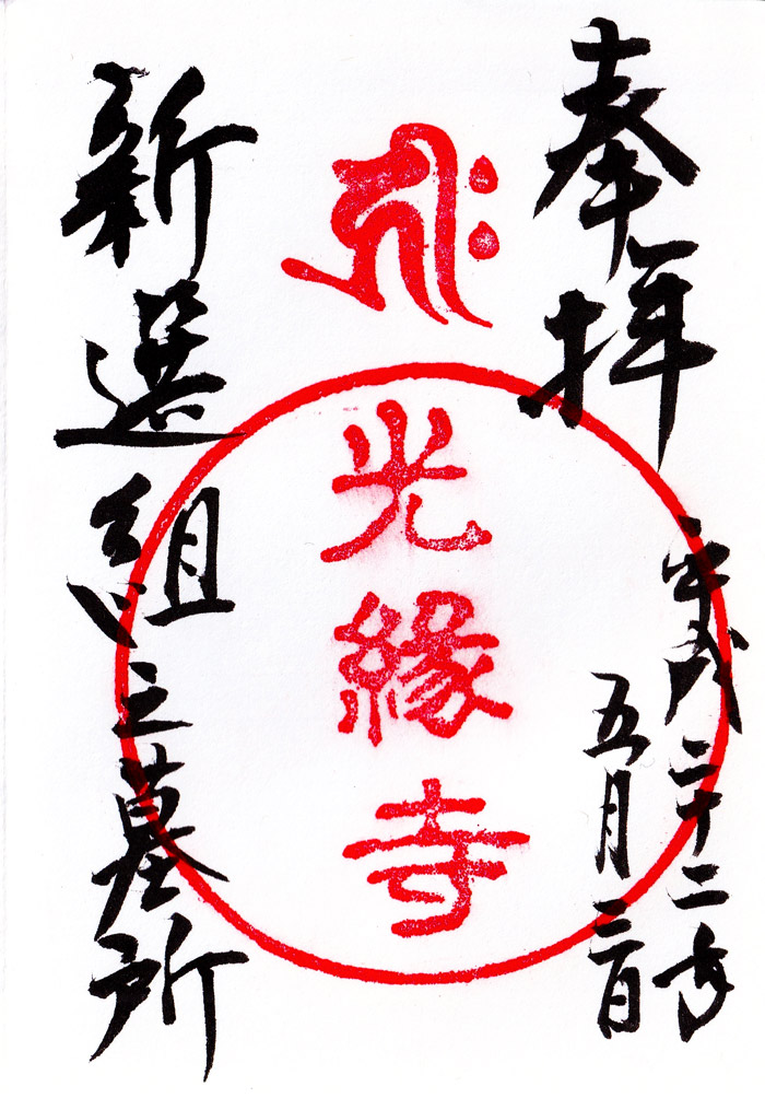 光縁寺は、新選組ファンにとっては聖地とも言える場所だと思う。初めて参拝した時には、大河ドラマ「新選組!」を見てから間もないころだったので、山南敬助をはじめとする新選組のメンバーたちが眠る場所に立ち、心に来るものがあった。