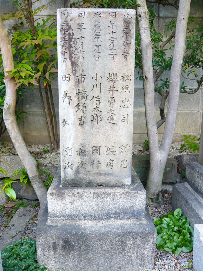 光縁寺は、新選組にゆかりのあるお寺で、総長の山南敬助や河合耆三郎など多くの戦士たちが埋葬されている。山南敬助は仙台藩出身の北辰一刀流の使い手で、親切な人柄で親しまれていたが、首脳陣との確執から脱走し、隊規違反で切腹に処された。後に彼が葬られた場所が、光縁寺である。 参拝日:2007年12月23日