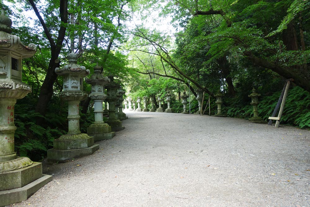 とても気持ちの良い参道。両端に並んでいる石燈籠が有名である。