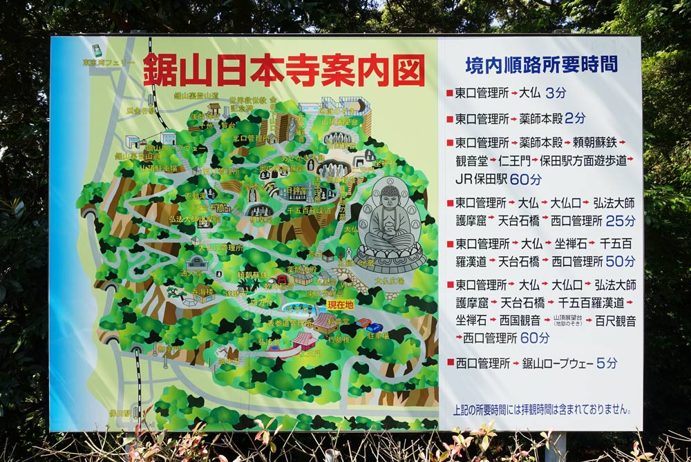| 最寄駅 | 「JR内房線 浜金谷駅」下車 ※ロープウェイ利用の場合 「JR内房線 保田駅」下車 ※表参道から登る場合 |