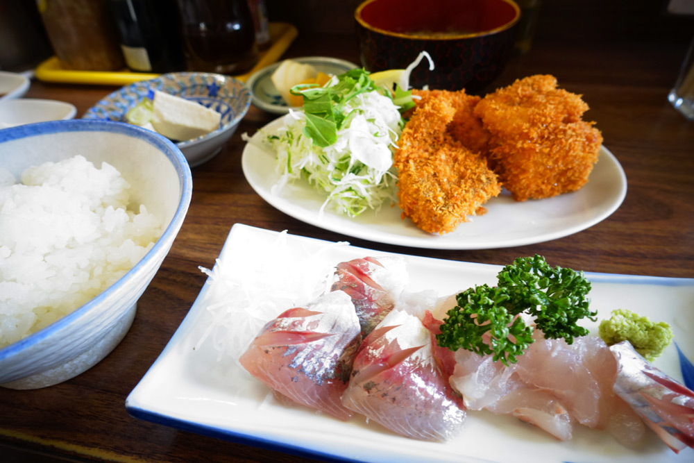 ここのアジフライは房総沖で捕れる「黄金鯵」を使用。全く臭みがなく、身もふっくらしているので、本当に美味しい。