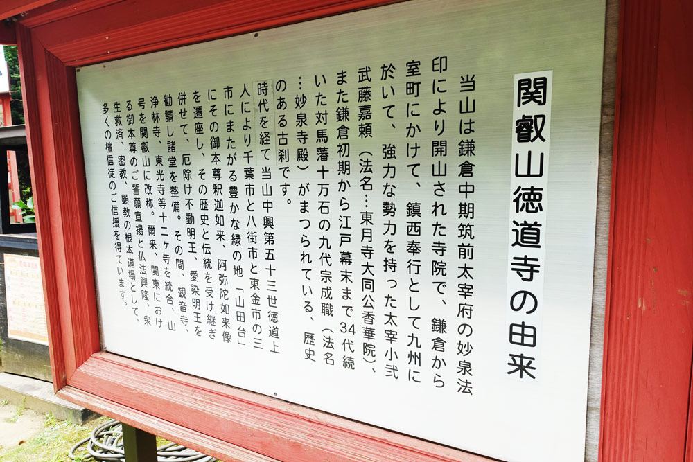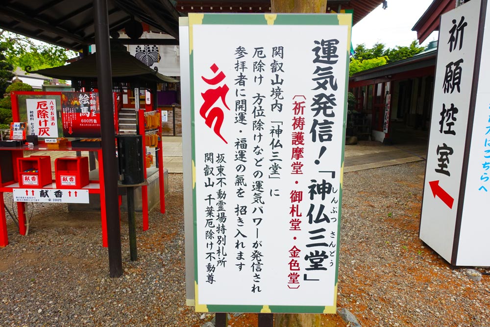 千葉市や東金市で有名な厄除け不動のお寺で、関東地方で三大厄除け不動の一つとして知られている。特にお正月には多くの参拝客でにぎわい、その数はなんと60万人もの人々が訪れるほど!千葉県内では参拝者数が3番目に多いお寺である。