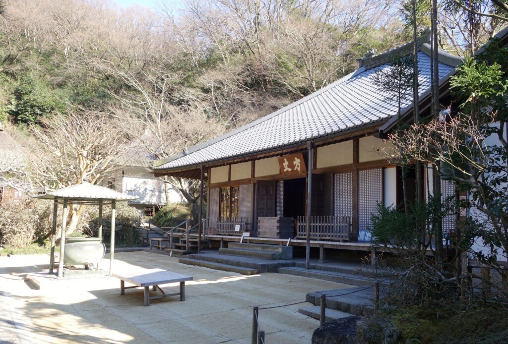 明月院の本堂には、「方丈」と書かれた扁額が掲げられている。御朱印は、本堂の右手前にある建物でいただける。