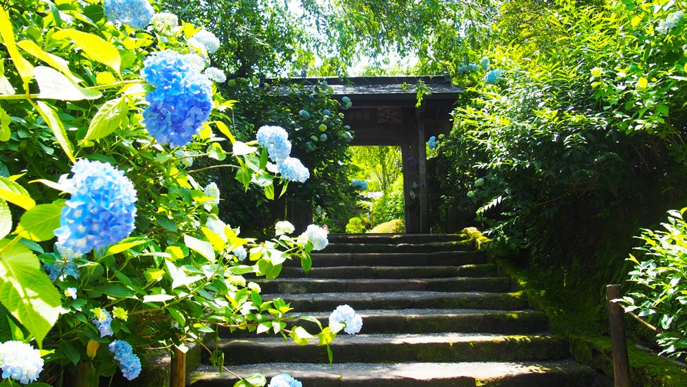 鎌倉の風情を味わいたいなら、北鎌倉の明月院。境内には美しい紫陽花が咲き誇り、禅文化を感じられる「悟りの間」もあり、いつの間にか別世界へと誘われる。 参拝日:2016年6月4日