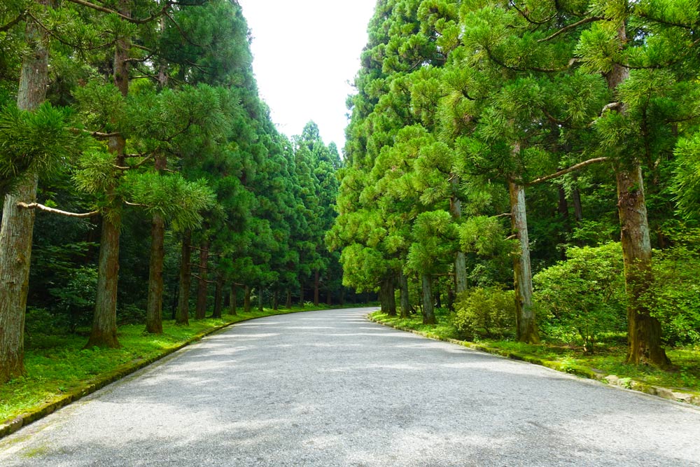 きれいな杉林に玉砂利が敷かれた参道(表参道)を歩くと自然と背筋が伸びる。