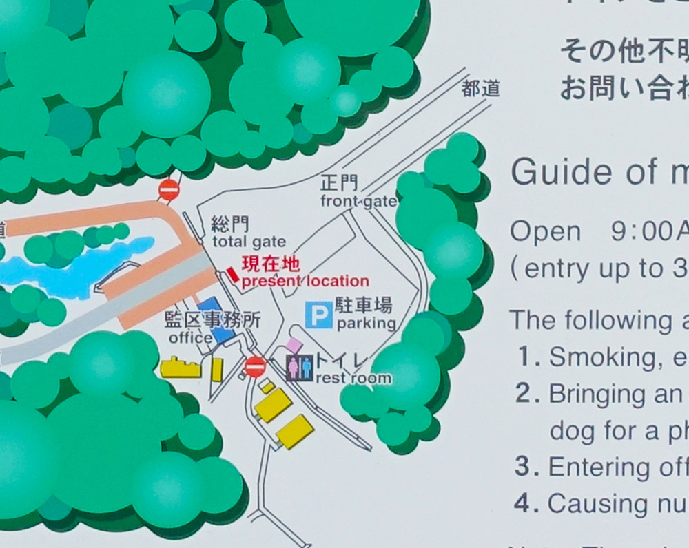 陵墓がとても大きいので、入口の案内看板に掲載されていた地図を先に確認しておくと、位置関係がわかりやすい。
